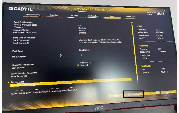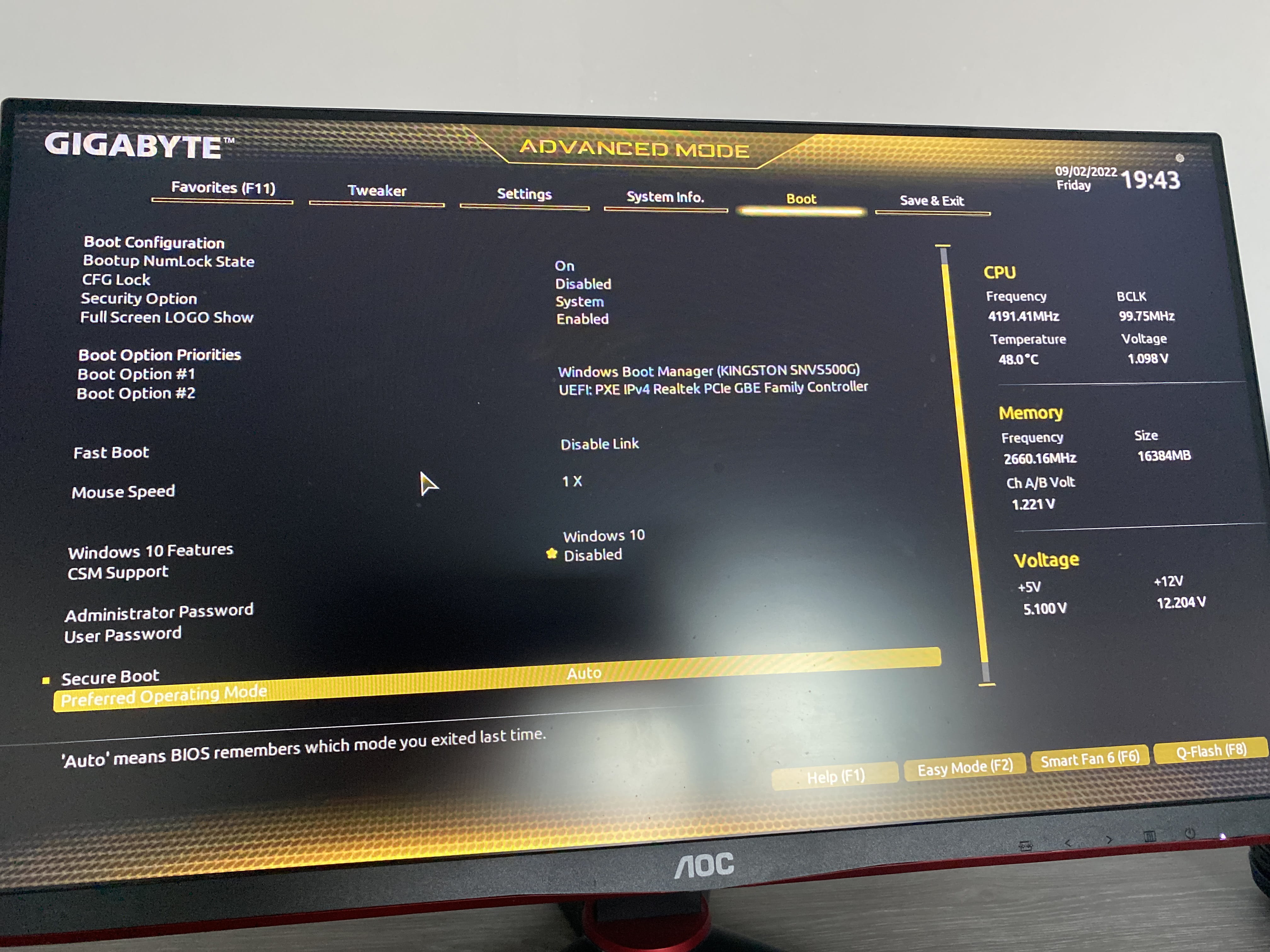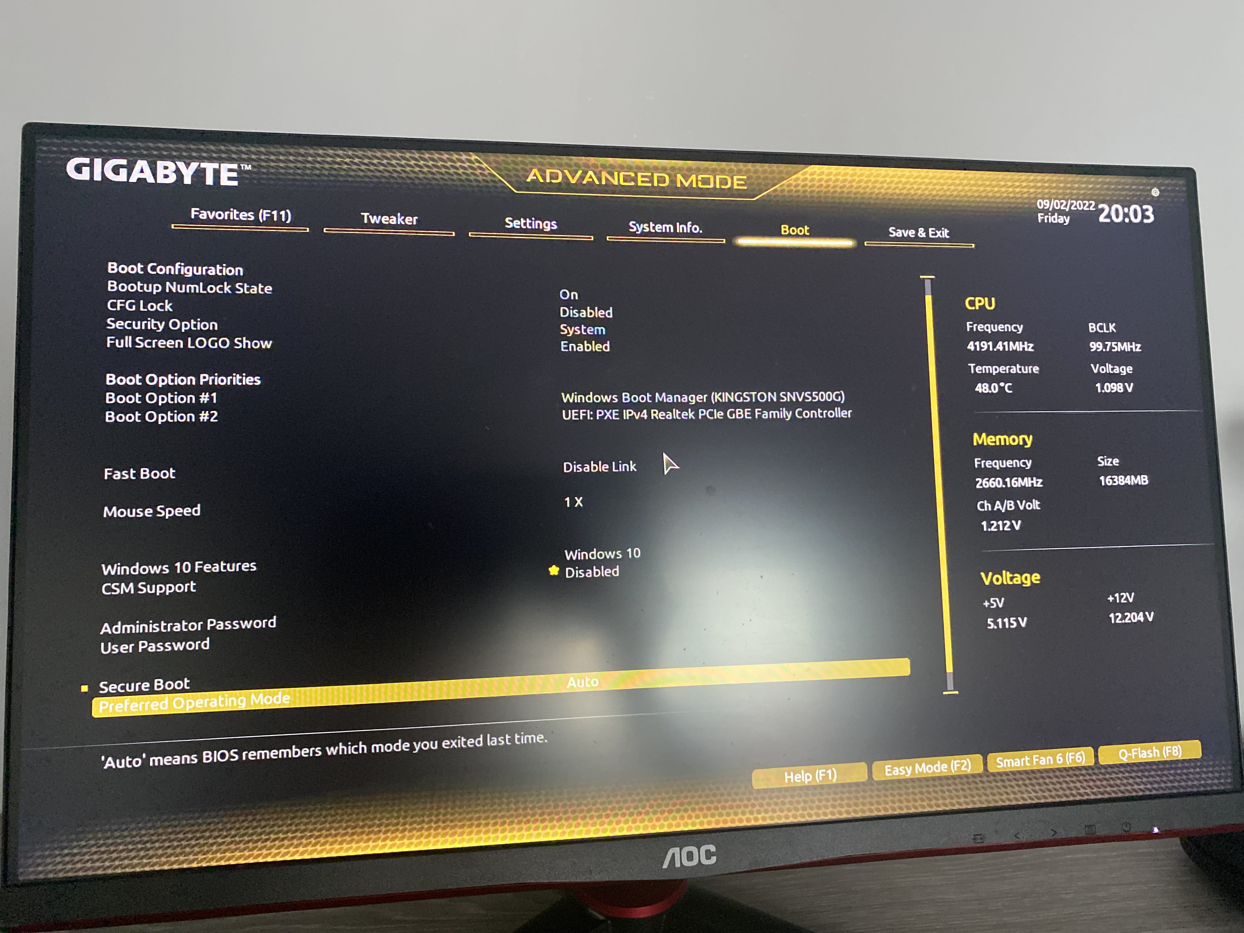 clique sur l'onglet Boot et poste 1 capture d'écran