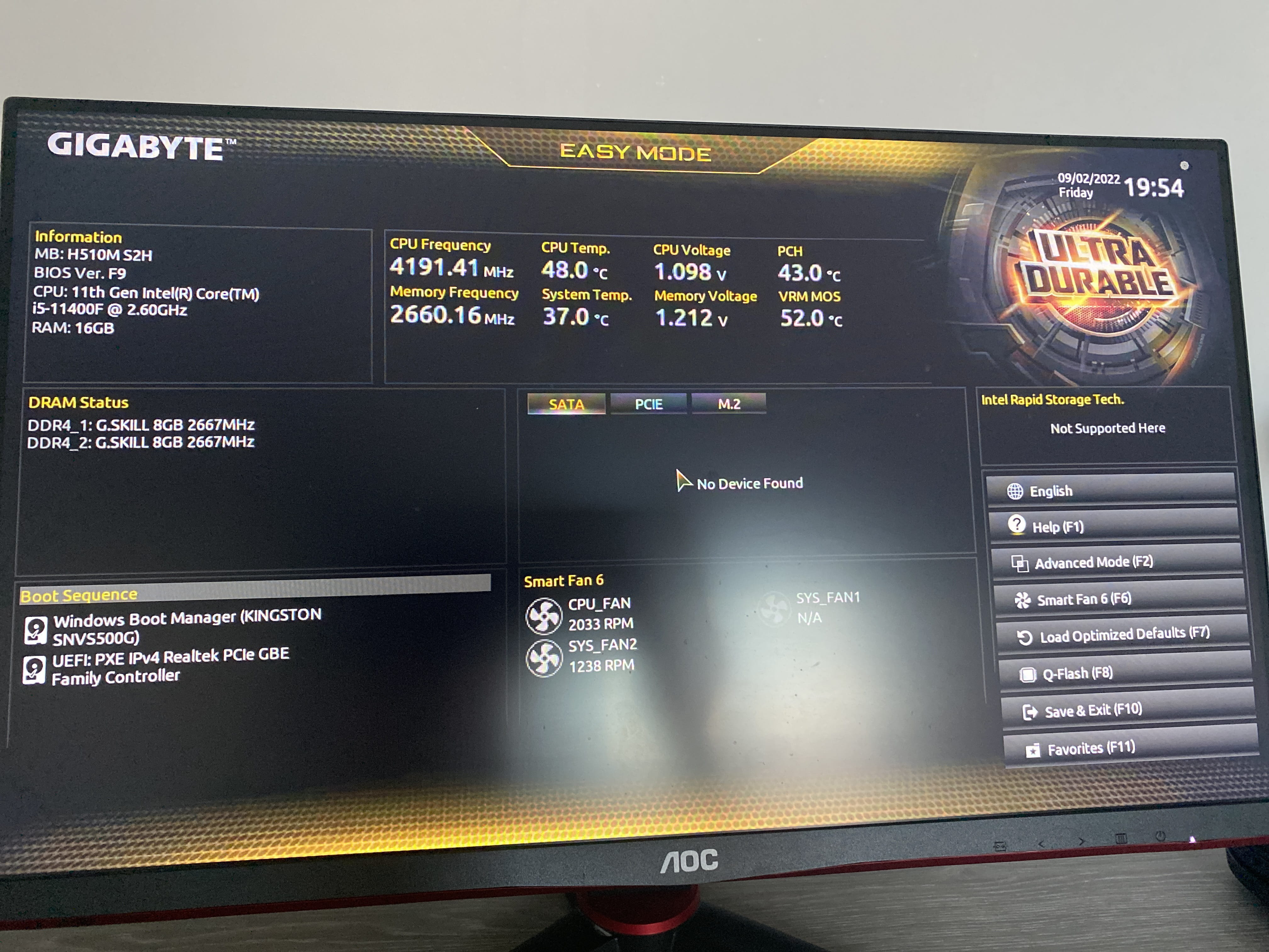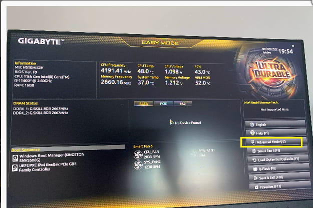 quand tu es sur la page de Boot Menu, clique sur Enter Setup et poste 1 capture d'écran
