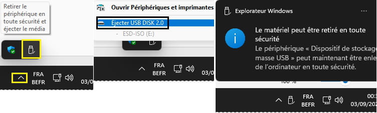 oui, tu peux ejecter la cle USB via les icônes cachées dans la barre des tâches, pour retirer le périphériques en toute sécurité