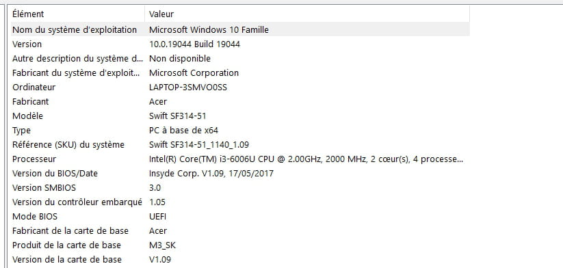 Processeur Intel(R) Core(TM) i3 CPU 550 @ 3.20GHz 3.20 GHz