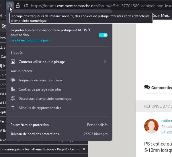 Pour la protection contre le pistage, oui j'avais déjà essayé.