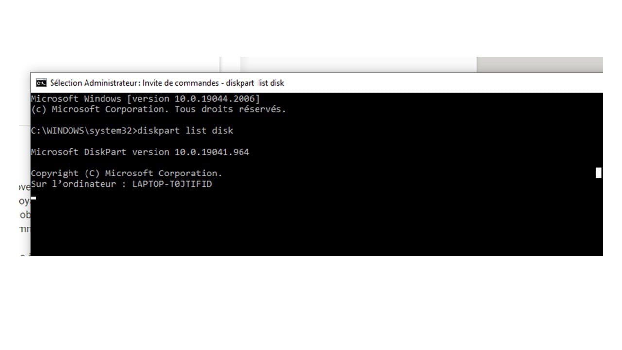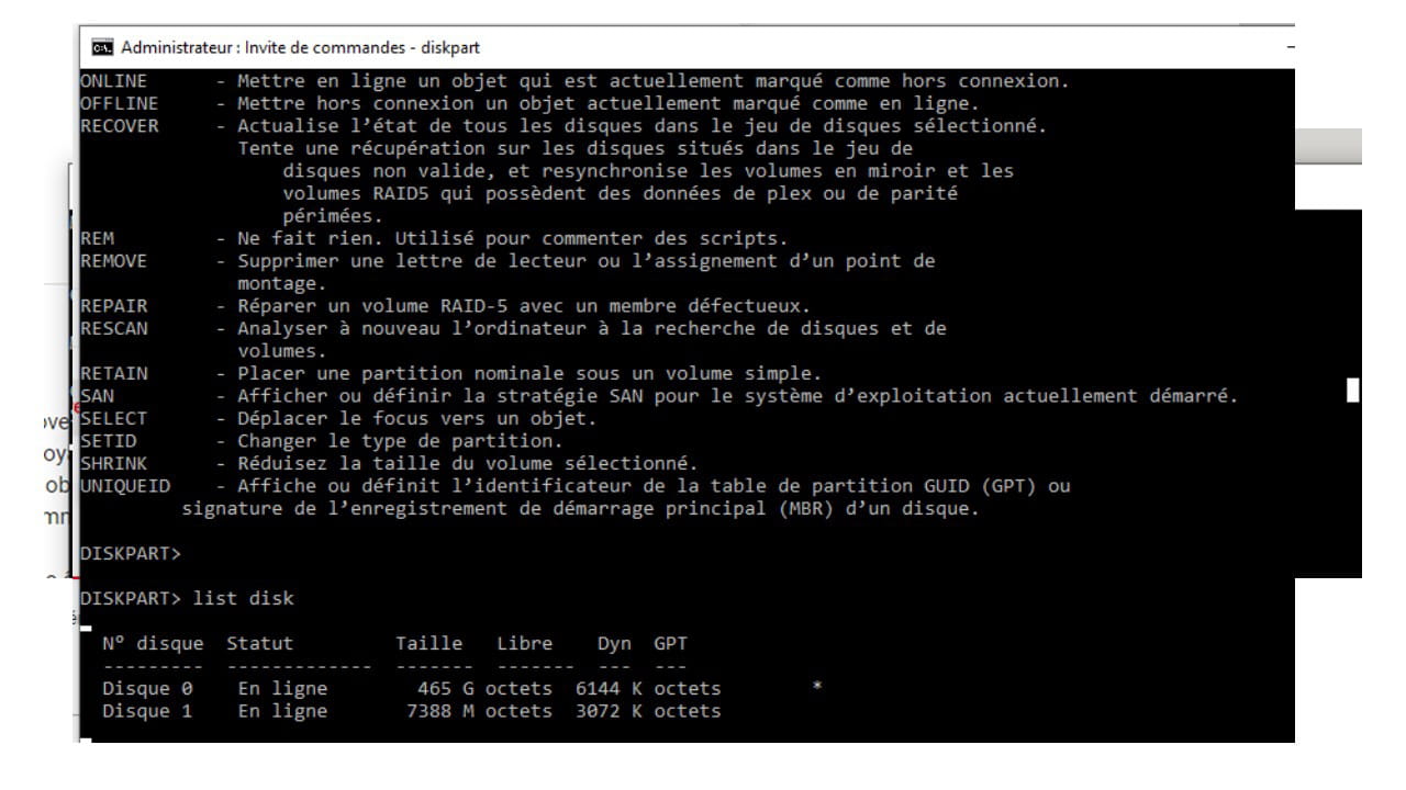 On va faire un contrôle par une invite de commande, en mode administrateur, pour vérifier autrement si ce disque à d'autres partitions cachées ! Disque dur externe branché bien entendu.