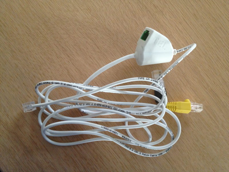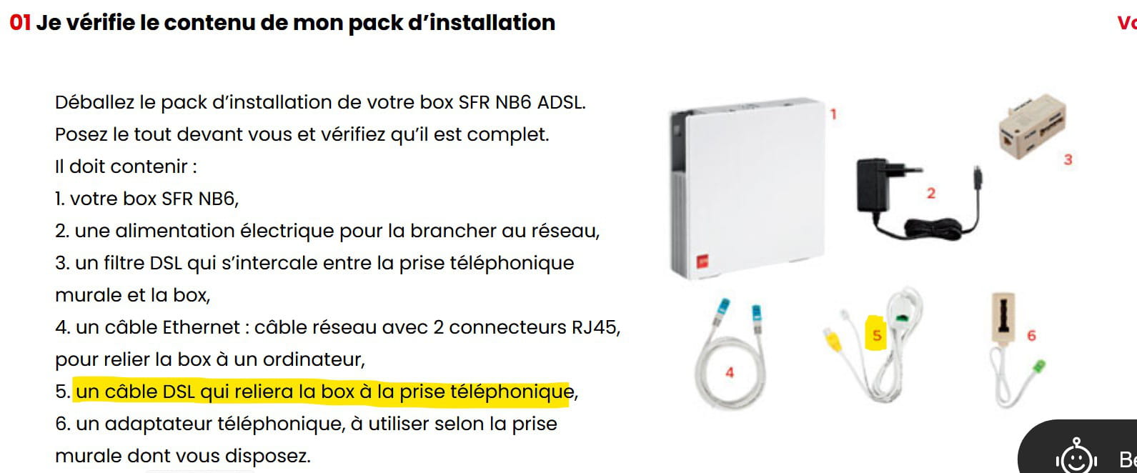 Dans le cadre de mon travail, sur un site, j'ai un soucis de connectique avec une box SFR (N86V), il y'a un connecteur bizarre que je n'ai jamais vu ailleurs. Il relit la ligne à la box en ethernet, et permet également de branche le RJ11 du téléphone.