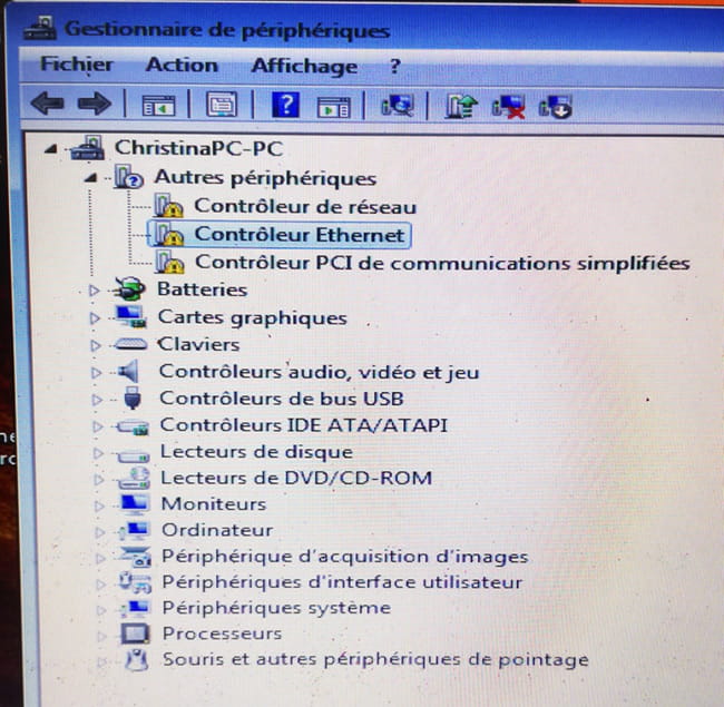 Le gestionnaire des périphériques de cette nouvelle installation affiche ceci