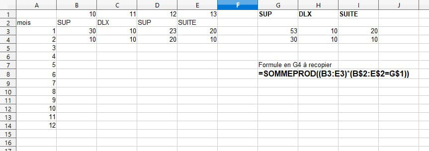 Sur la ligne 2 je souhaite donc faire la somme des fréquentations du mois pour chaque catégorie. Par exemple pour la SUP dans mon exemple: somme des rechercheh SUP du tableau 1 ligne 3 = 53
