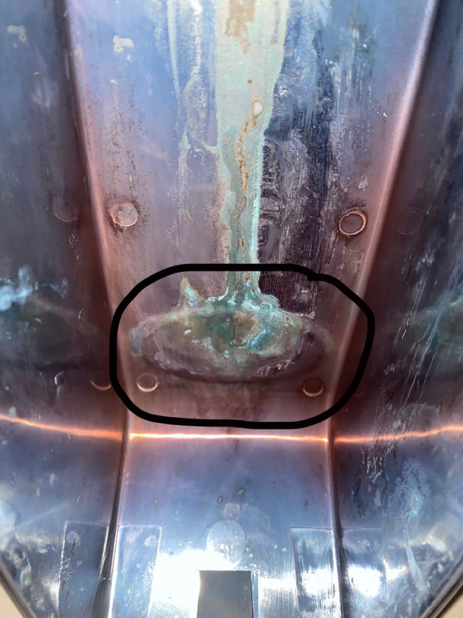- Des coulures pas très propres de gel douche avec des traces d'oxydation (vis du support ?)