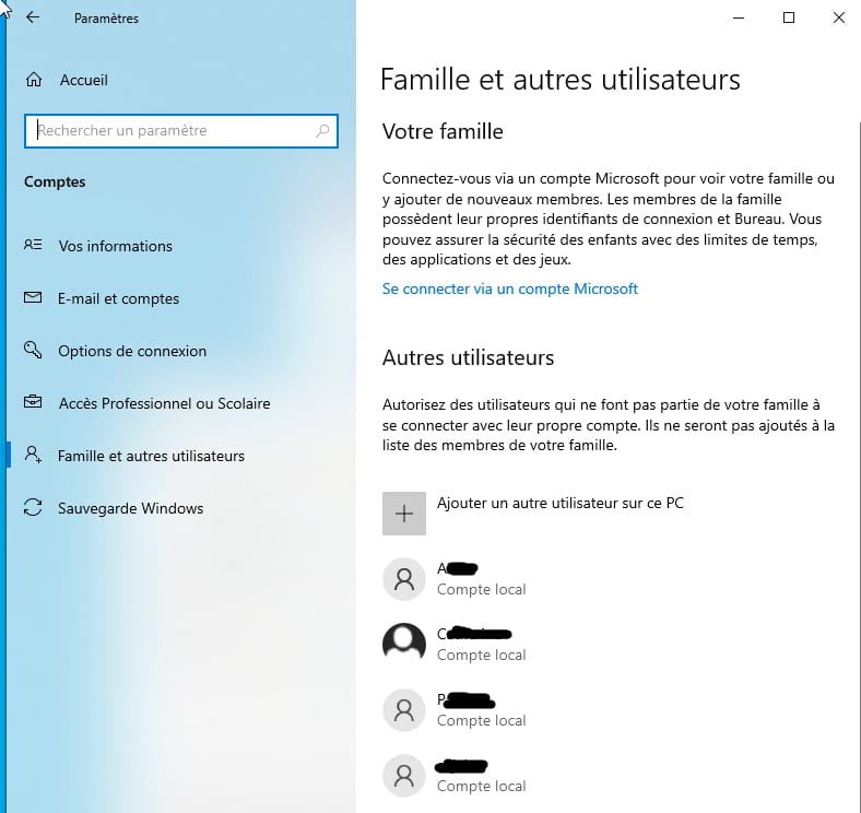 depuis ce matin seul le compte administrateur est disponible au login. dans Paramètres / Famille et autres utilisateurs je peux voir les autres utilisateur
