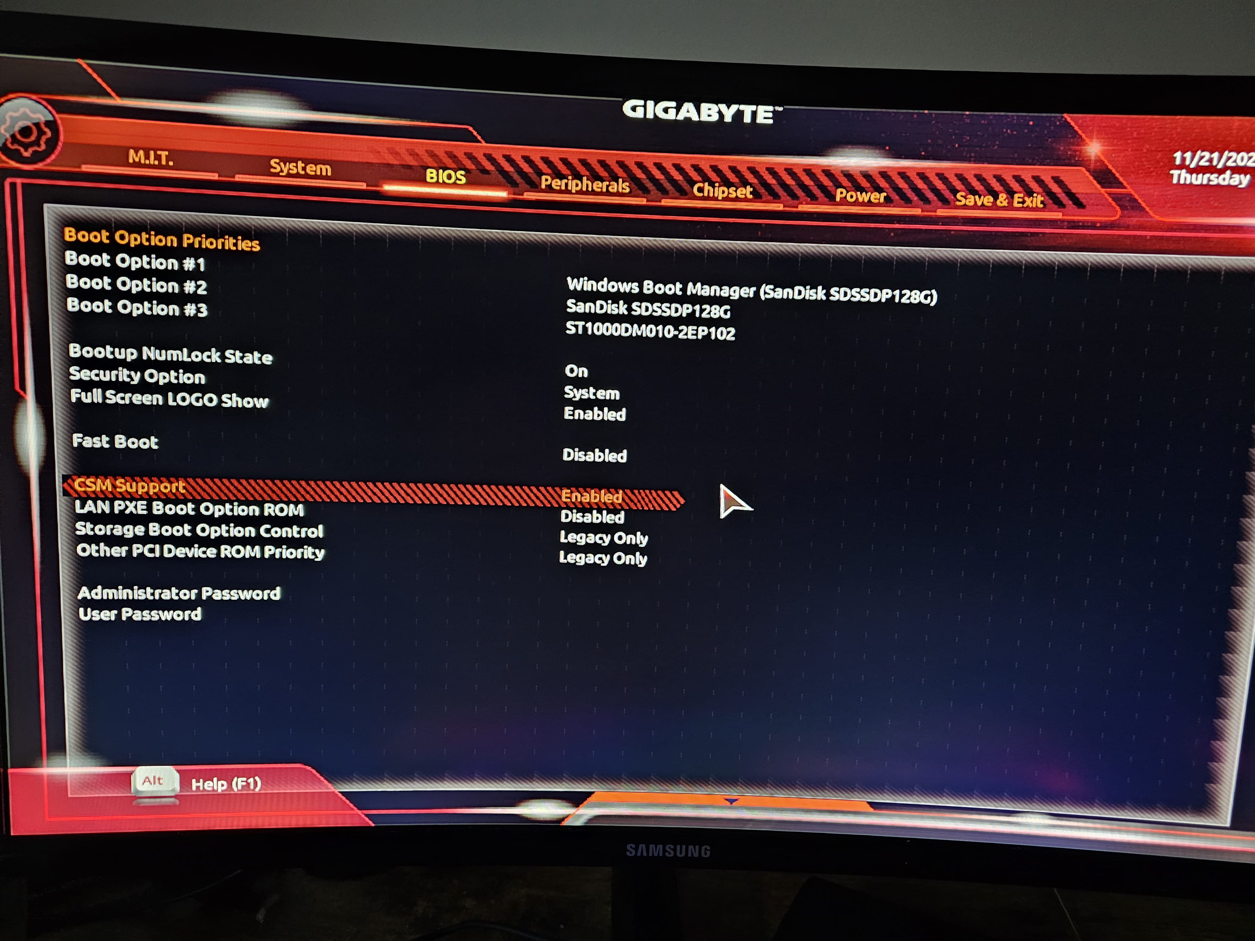 Dans le bios je désactive le CSM support pour débloquer l'option Secure boot