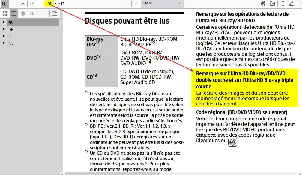 Remarque sur l’Ultra HD Blu-ray/BD/DVD