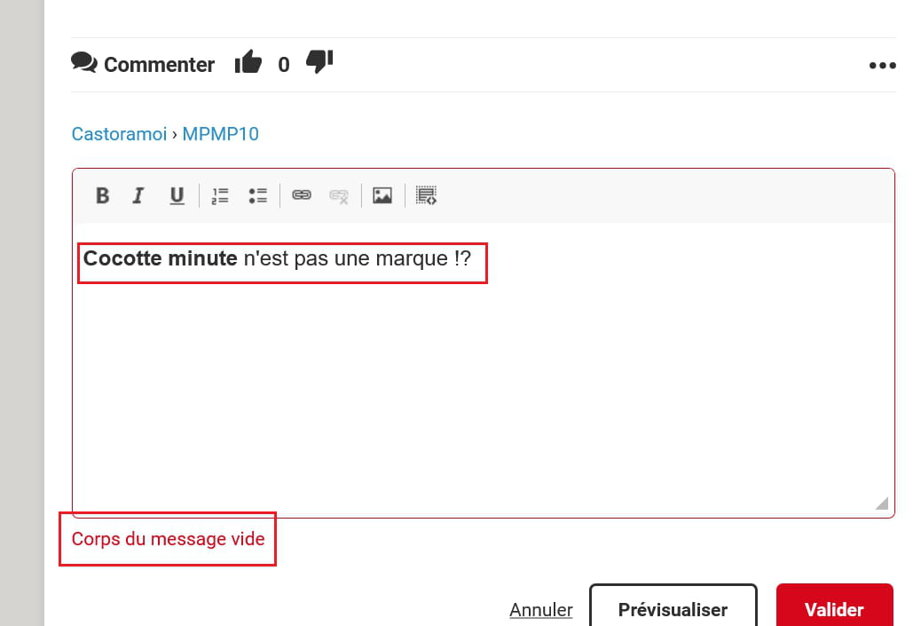 Tu as certainement dans le bloc-notes ou où tu veux ajouté du texte à "cocotte minute", pas dans le corps du message, puis collé le tout.