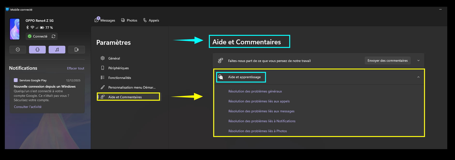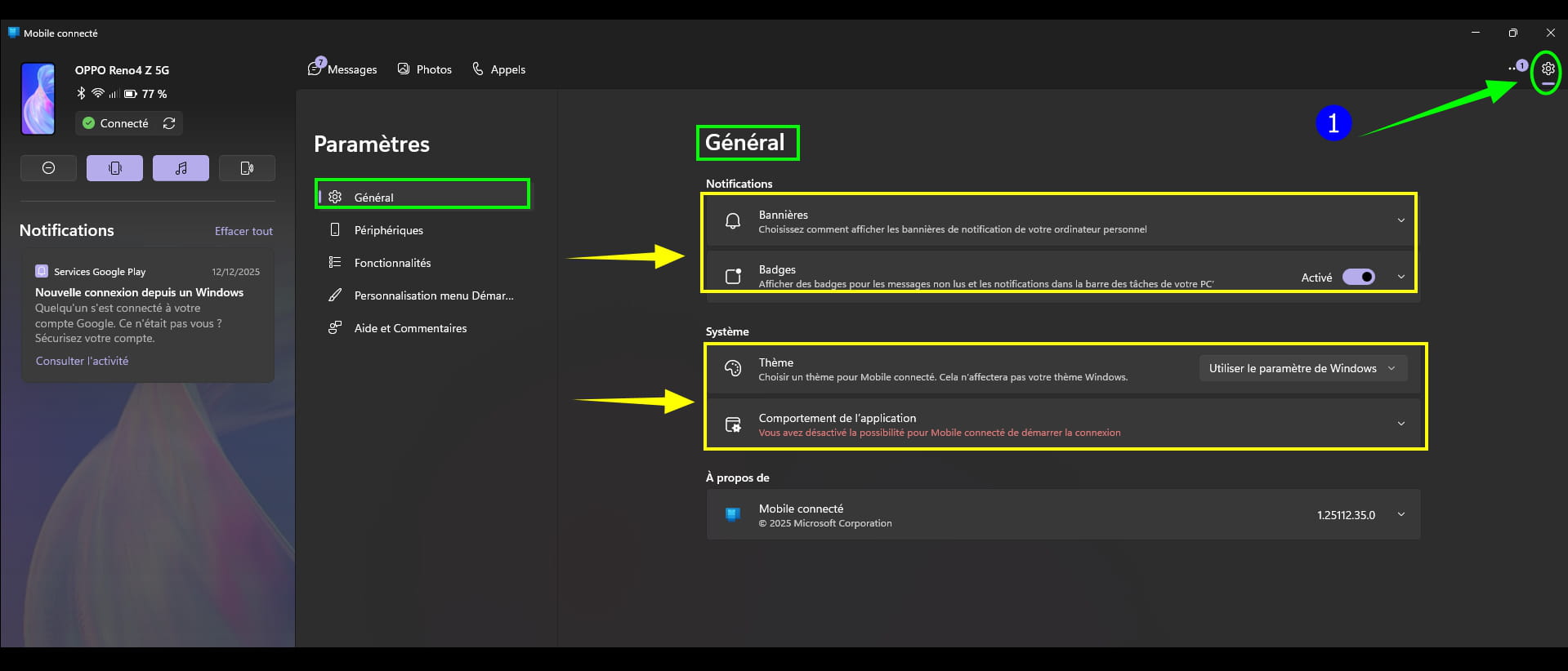 Sur l'image ci-dessous,l'application Mobile connecté n'est pas installée (Lien avec Windows sur le smartphone),c'est cela le petit plus en dehors de l'affichage qui ne satisferont pas tous les utilisateurs (e).