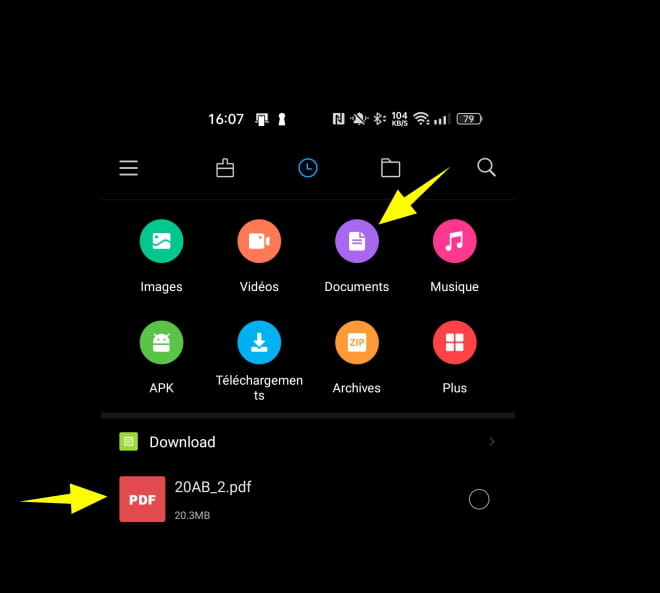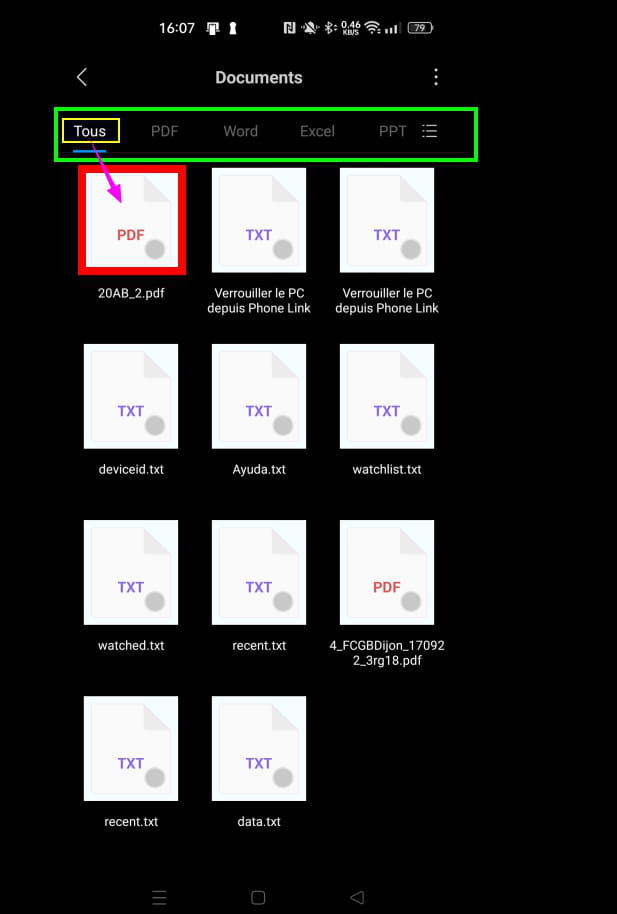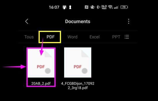 L'explorateur du smartphone (les plus récents en principe) affichera tout les formats disponibles dans la rubrique Documents.