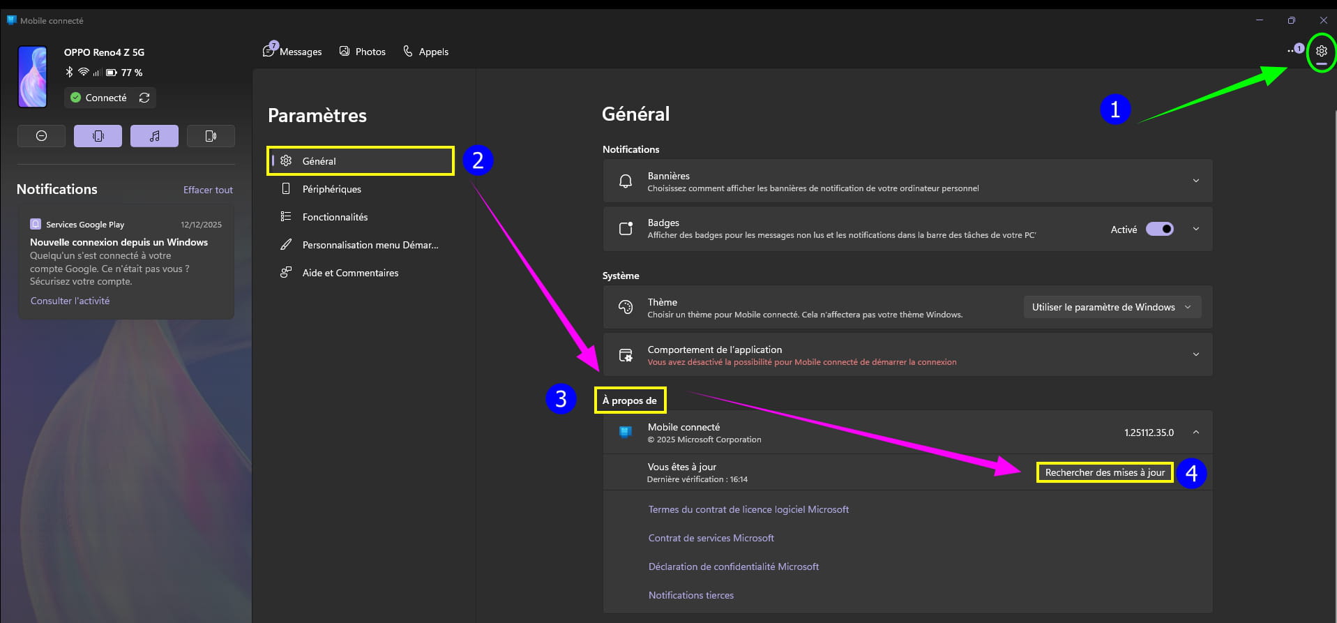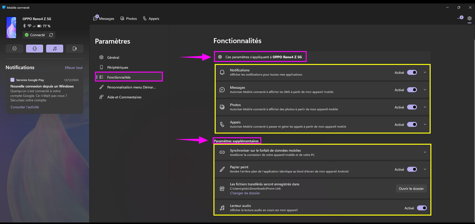 Enfin sur le smartphone, vous utilisez l'appli Lien avec Windows.