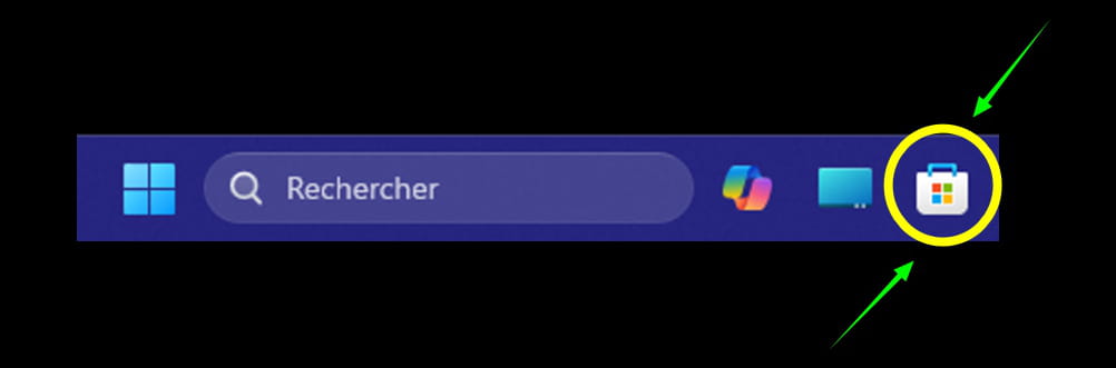 Microsoft Store ,c'est le petit panier présent sur la barre des tâches.
