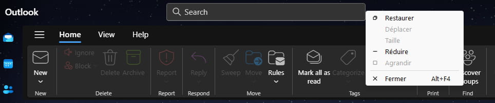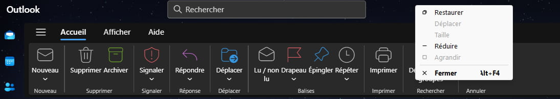 Essayer un clic droit dans un espace libre de la grande barre horizontale Outlook en haut de la page, puis Traduire en Français