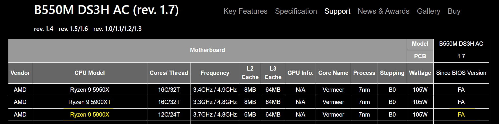 CM : Gygabyte B550M DS3H AC