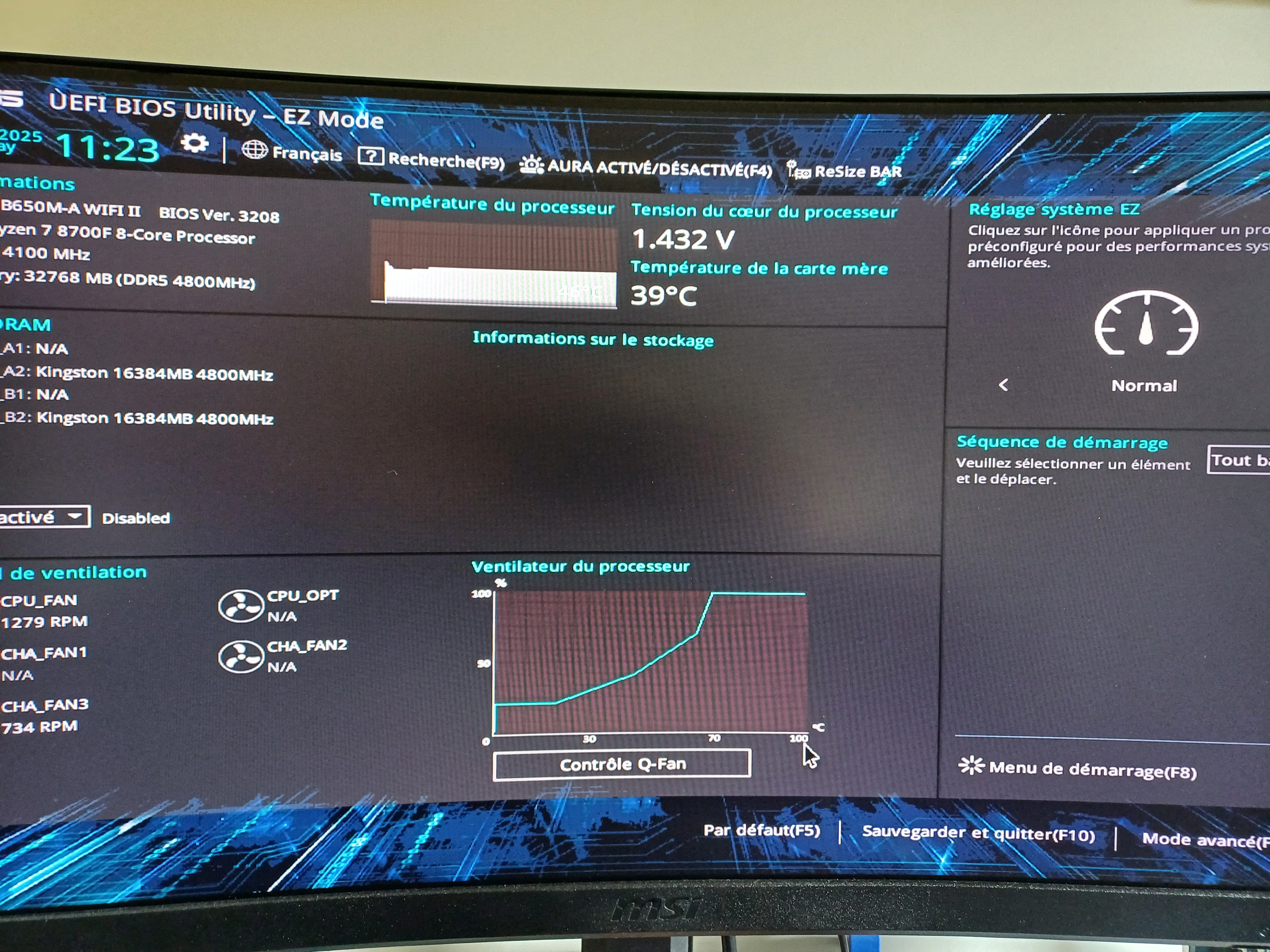 Bonjour, je sais pas si je suis au bon endroit pour demander ce genre d'infos mais je suis au bord du désespoir. J'ai renvoyé mon pc au SAV du site où je l'avais acheté pour des problèmes de crash et ils m'ont seulement changé la RAM. Le pc vient de revenir et je me retrouve à ne pas pouvoir installer windows ni faire quoi que ce soit parce que le ssd (Kingston NV3 1To) n'est pas détecté par le bios. Image à l'appui :