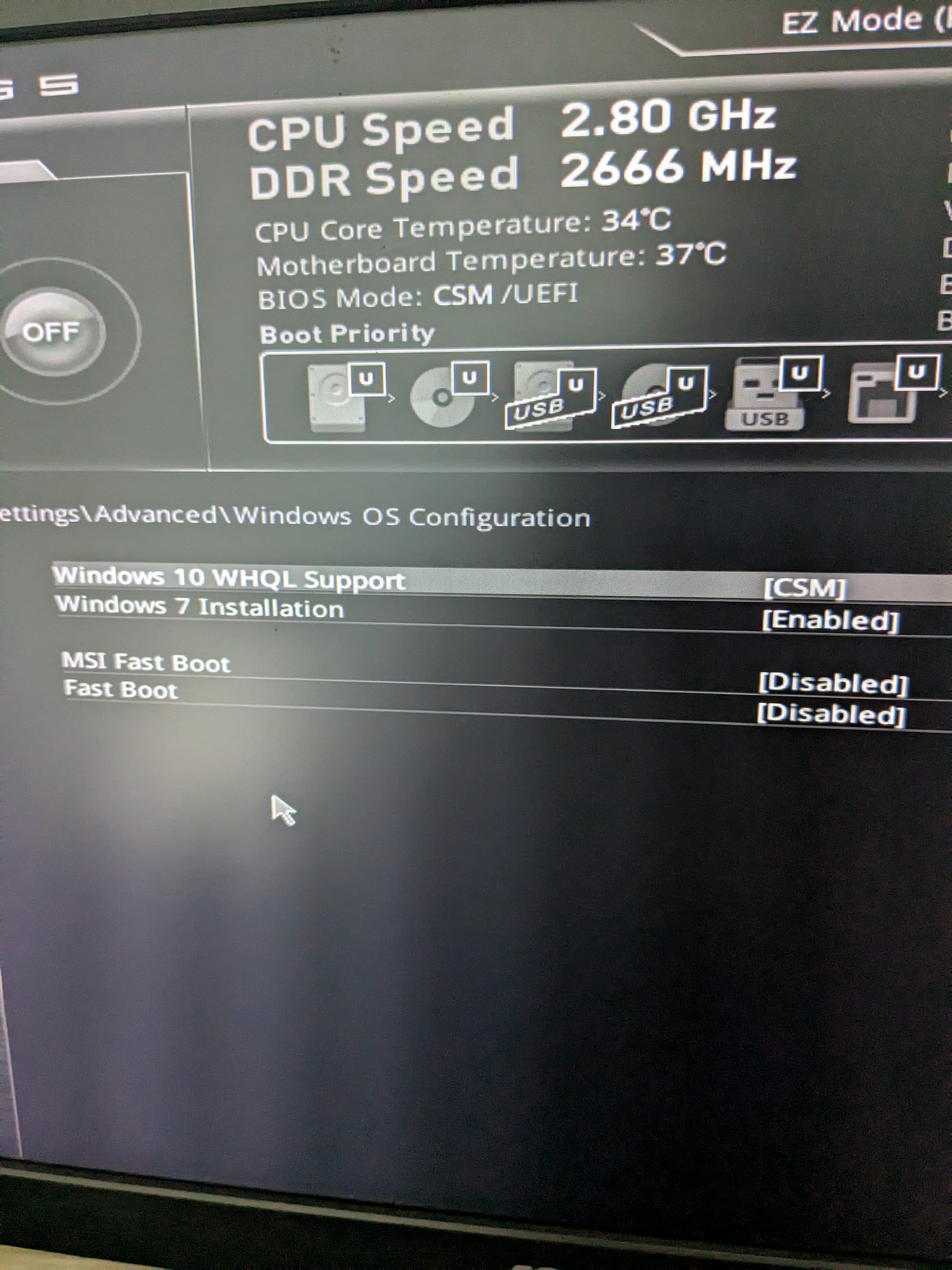 Et aussi quand j'active le uefi sur w10 dans le BIOS je perde des icône dans la case boot priority