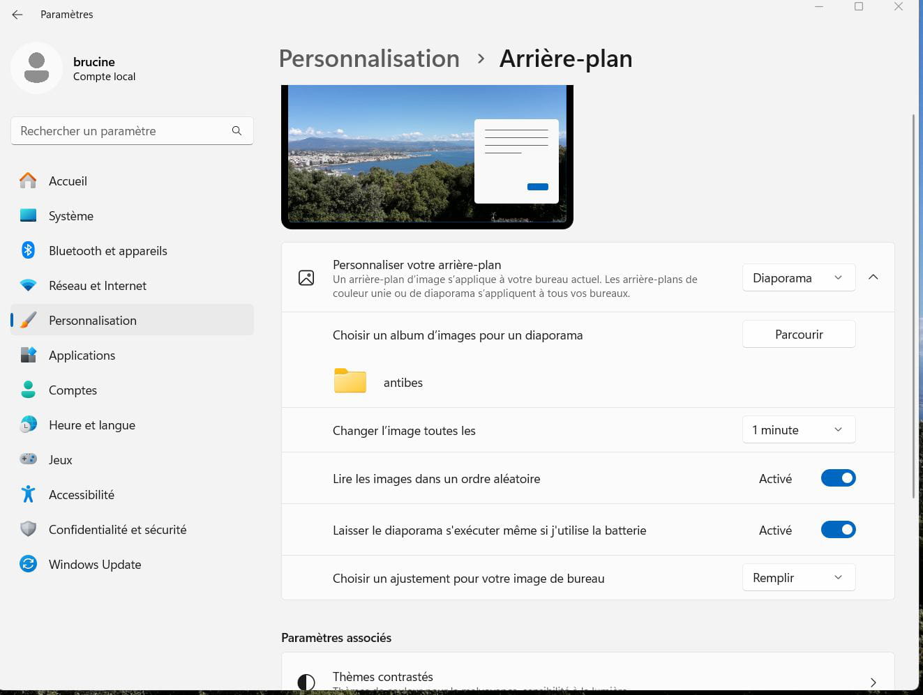 Pour le fond d'écran du bureau il faut que tu mettes les photos choisies dans un dossier que tu crées à cet effet et que tu règles les paramètres à ton goût.