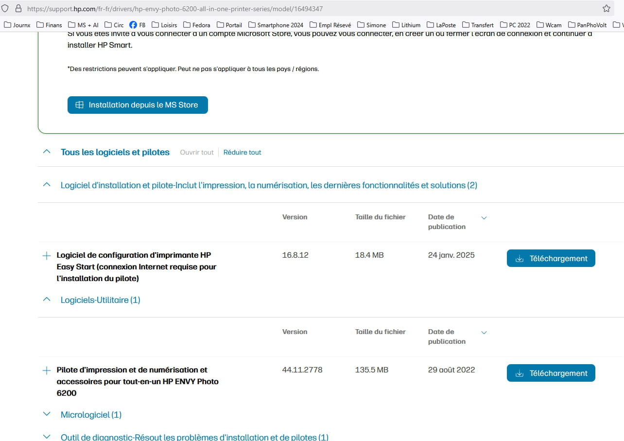 sur l'ordi de bureau j'ai windows 11; mon imprimante est HP ENVY 6232