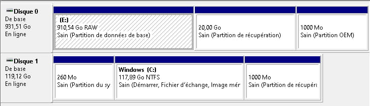 Ce qui est curieux aussi est que le disque comporte une partition OEM et une partition de récupération alors que la partition fautive n'est pas système.