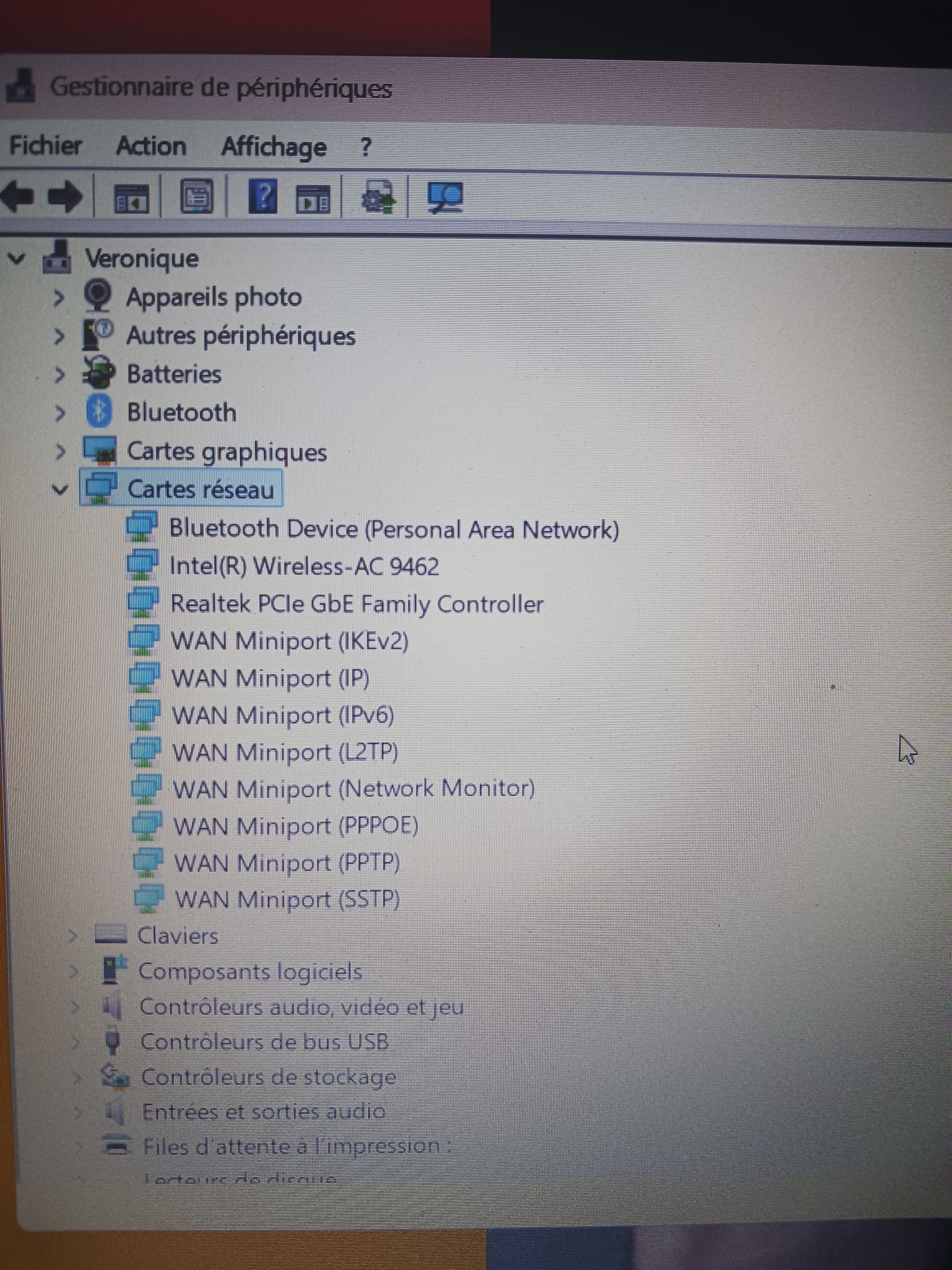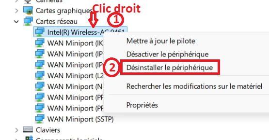 1- Fais clic droit sur la carte --> Intel wireless .....