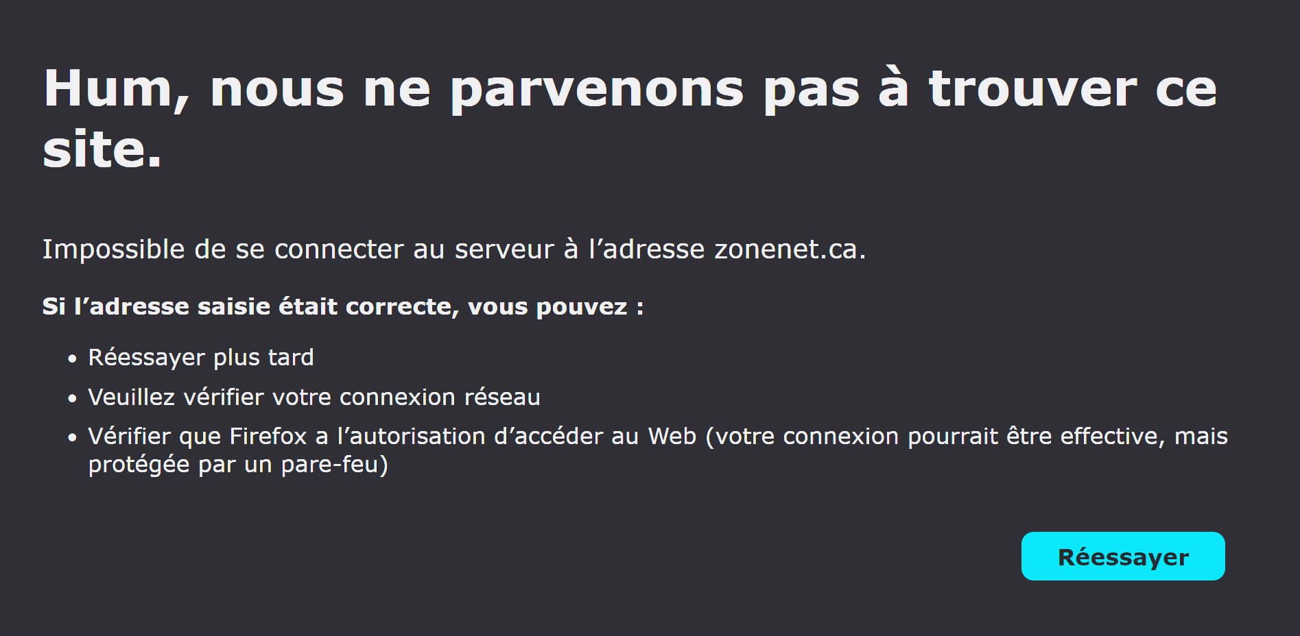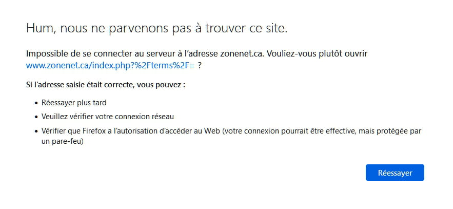 Le site zonenet.ca ne fonctionne plus