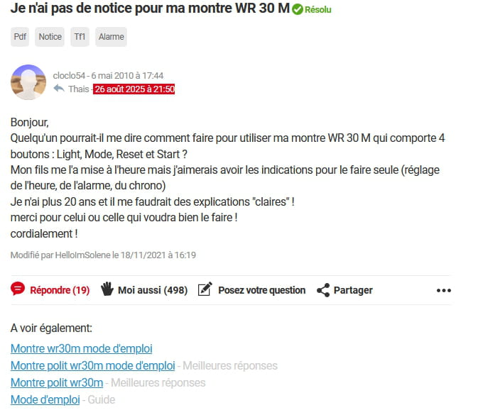 On verra quand le bug de déphasage entre les serveurs sera résolu si cela corrige cette anomalie. Mais cela ressemble plus à un message ancien qui contiendrait du texte mal parsé (annihiler du code HTML inclus dans le message) qui détruit la mise en page. On peut accéder au dernier message de la discussion : https://forums.commentcamarche.net/forum/affich-17640211-je-n-ai-pas-de-notice-pour-ma-montre-wr-30-m?page=2#dernier