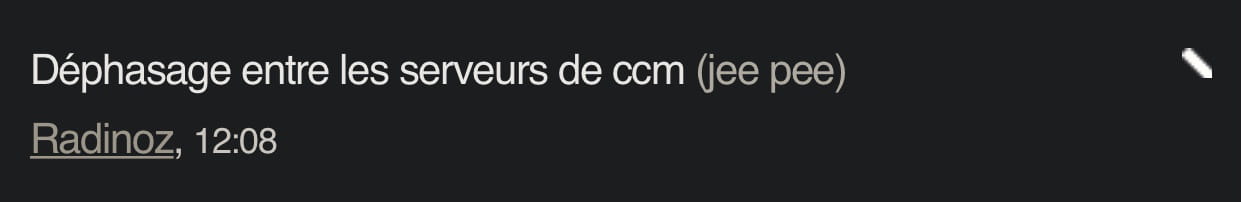 Moi en ce moment, c'est les messages édités, qui n’apparaissent plus comme édités tout de suite, plus que les messages qui n’apparaissent pas, qui semble moins fréquent depuis un moment.