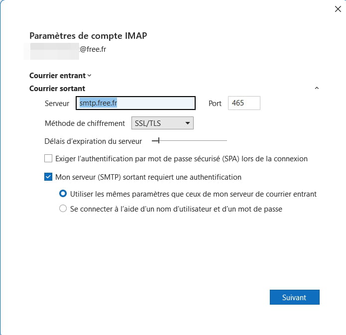 Pb de paramétrage mail Free sur Outlook 2021