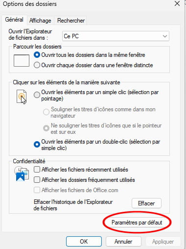 Pour les corriger, il est conseillé de réinitialiser les options de l'explorateur via "Options" > "Paramètres par défaut", ou de vérifier si une mise à jour ou une personnalisation a modifié l'interface.