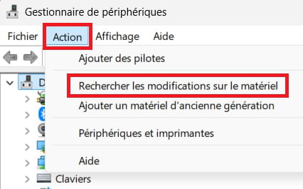Rechercher les modifications de matériel.