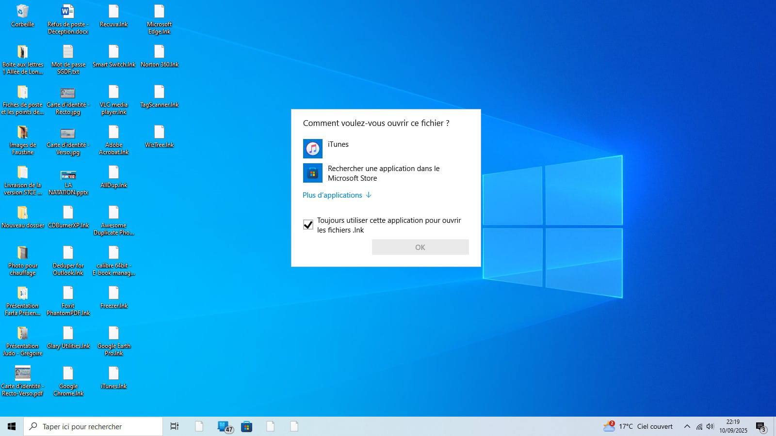 - Raccourcis tous transformés en .lnk et ne fonctionnant plus