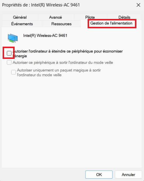 Décoche --> Autoriser l'ordinateur à éteindre.......