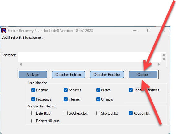 3- Une fois le script copié clique sur Corriger, FRST prend automatiquement le script qui est dans le presse-papier.