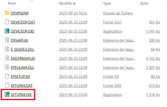 Va dans le dossier du pilote dézippé --> epson674376eu