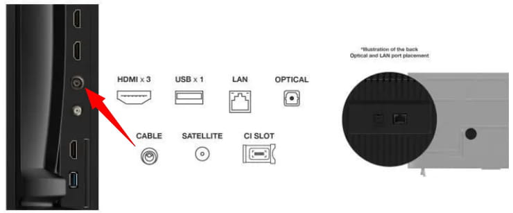 A l'arrière du téléviseur il y a deux prises d'antenne : Câble et Satellite