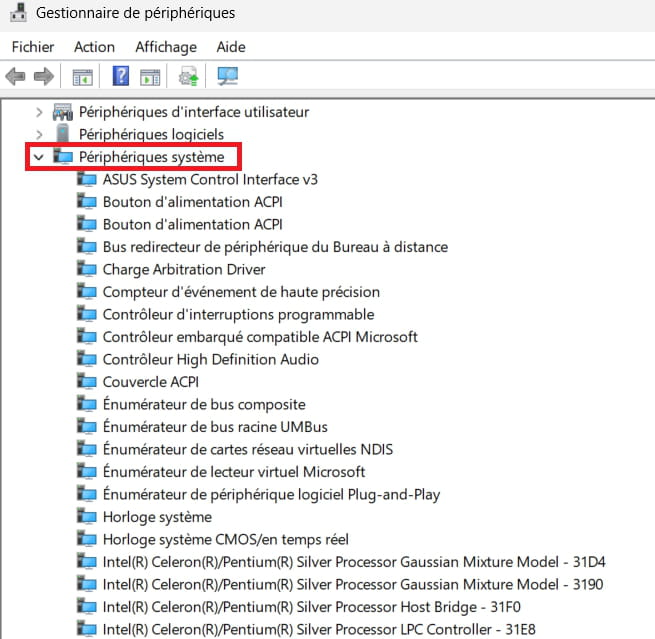 Vérifie s'il y a des périphériques problématiques dans --> Périphériques système