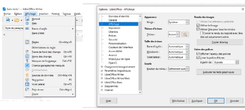 Car je n'ai pas du tout les mêmes menus dans l'onglet Affichage et dans les options !!!!