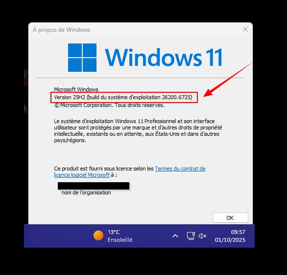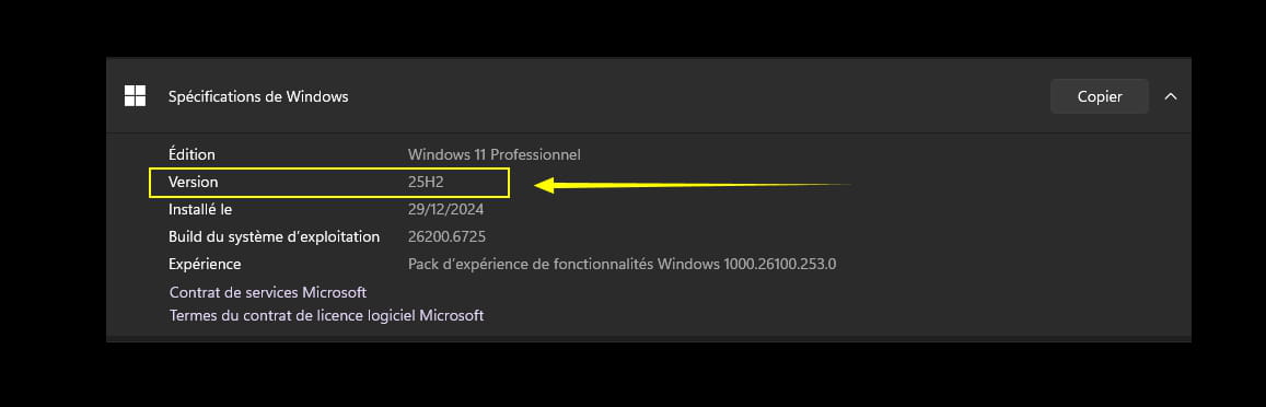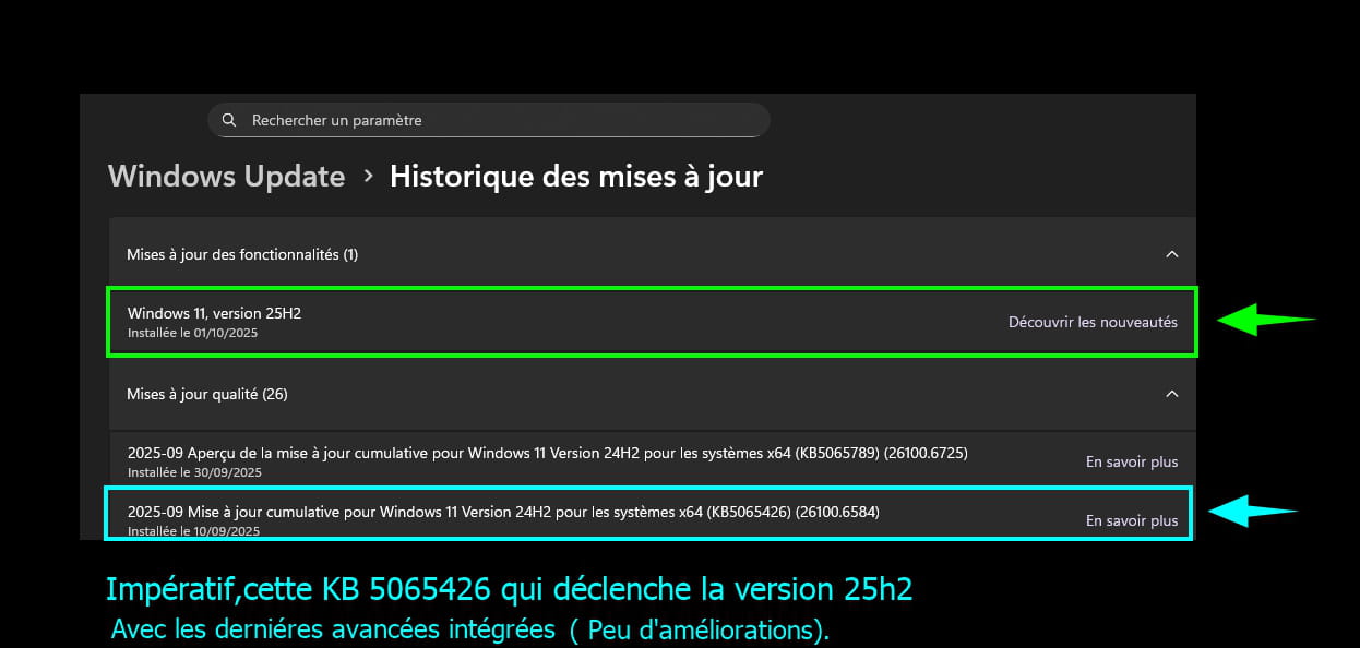 On dit la même chose que j'ai soulignée en <1>, si la configuration est trop ancienne pour supporter 24H2, ce sera la même chose avec 25H2 qui en est la copie conforme.