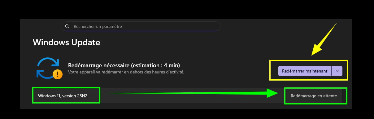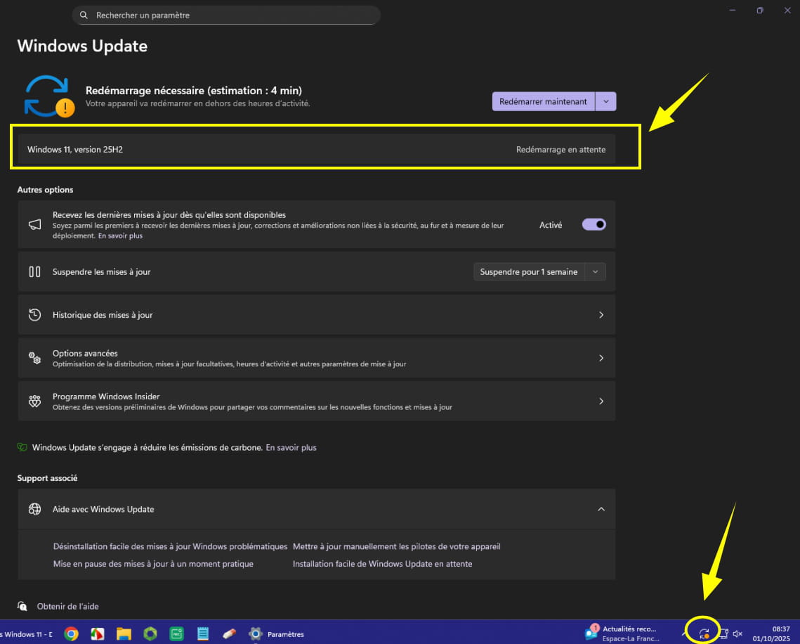 Mon PC récent (fin 2024/2025) étant compatible,au démarrage du PC Windows 25h2 était proposé,je m'y attendais pas de sitôt,ce fut la surprise du jour,parce-que sur d'autres PC W11 à jour avec les tout derniers correctifs des mises à jour Windows Update que j'ai vérifié,cela n'était pas proposé,mais Microsoft va déployer 25h2 progressivement.