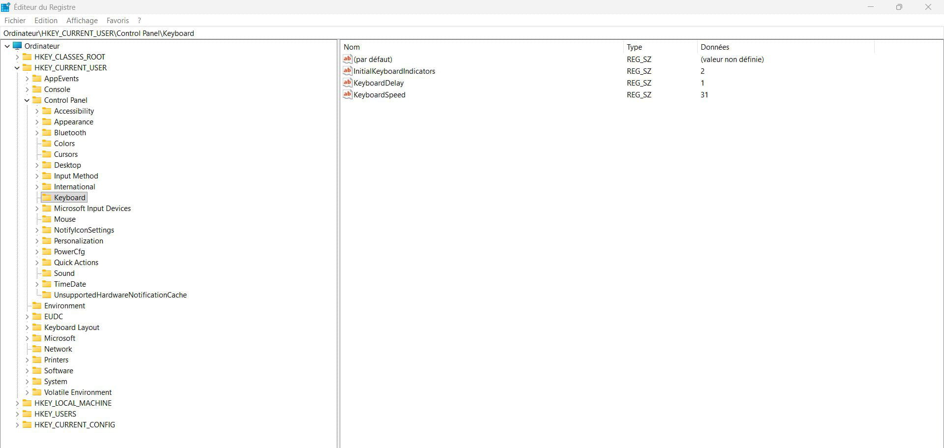 Base de registre modifiée, je vois le pavé numérique s'active au démarrage"led" et par la suite se désactive seul sous windows 11.