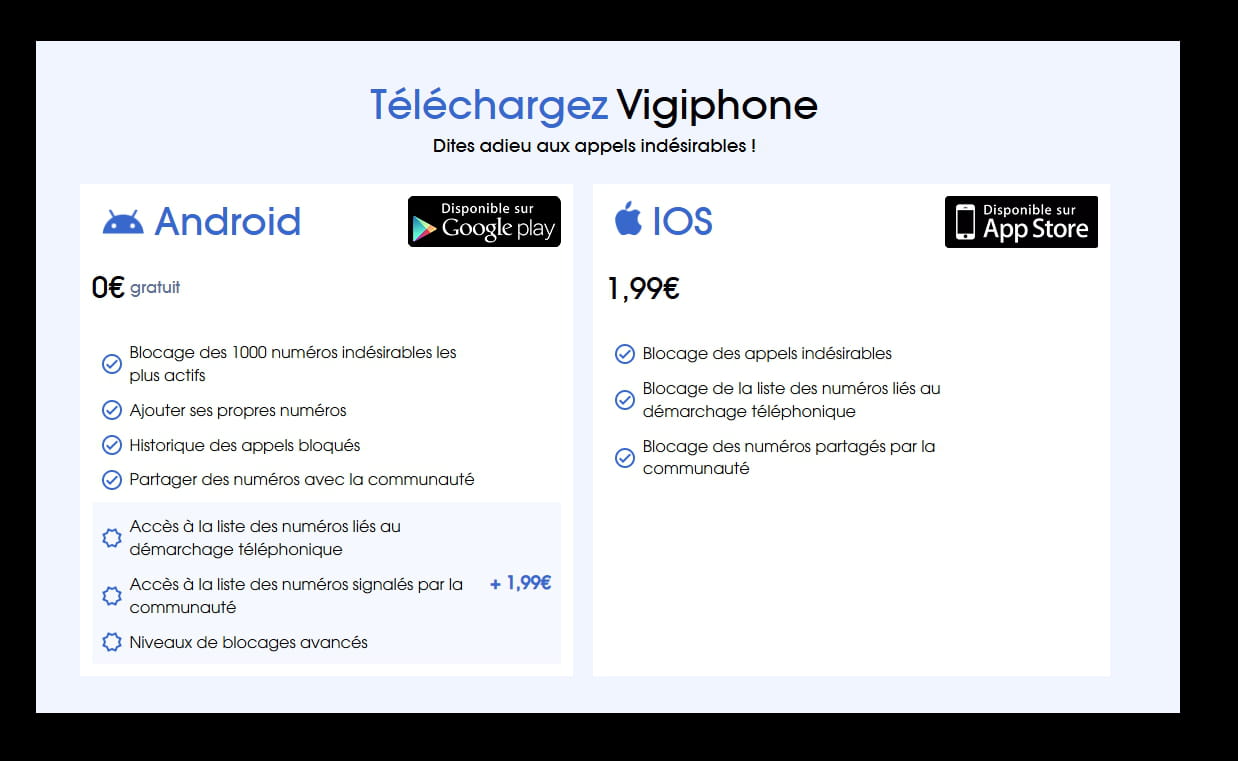 Vigiphone est gratuit,mais pour 1,99€ d'autres options de blocages supplémentaires.