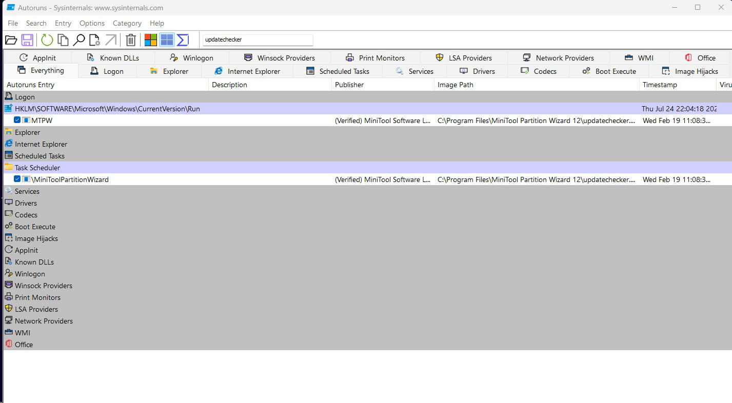 Bon je viens de lancer Autorun, et de filtrer sur "updatechecker", voilà ce que me dit Autorun: