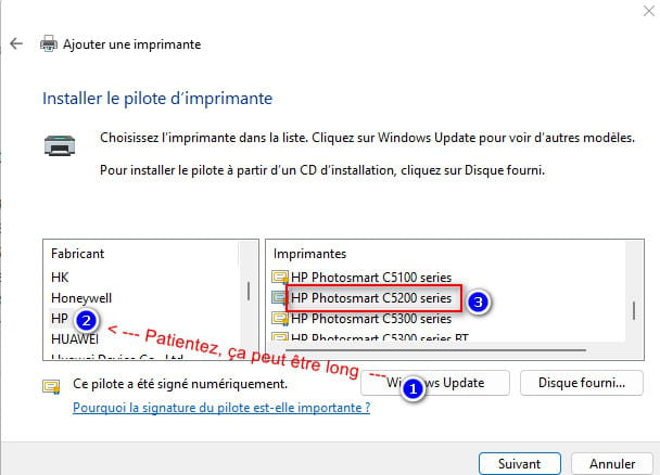Pilote pour imprimante HP photosmart C5280 introuvable