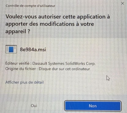 C'est normal, le contrôle UAC sous Windows 10 et 11 (que l'utilisateur peut désactiver s'il le souhaite) demande l'autorisation pour tel logiciel (ici l'installateur) de faire pour s'installer des modifications dans les dossiers Programmes, Windows, Utilisateur, Registre...