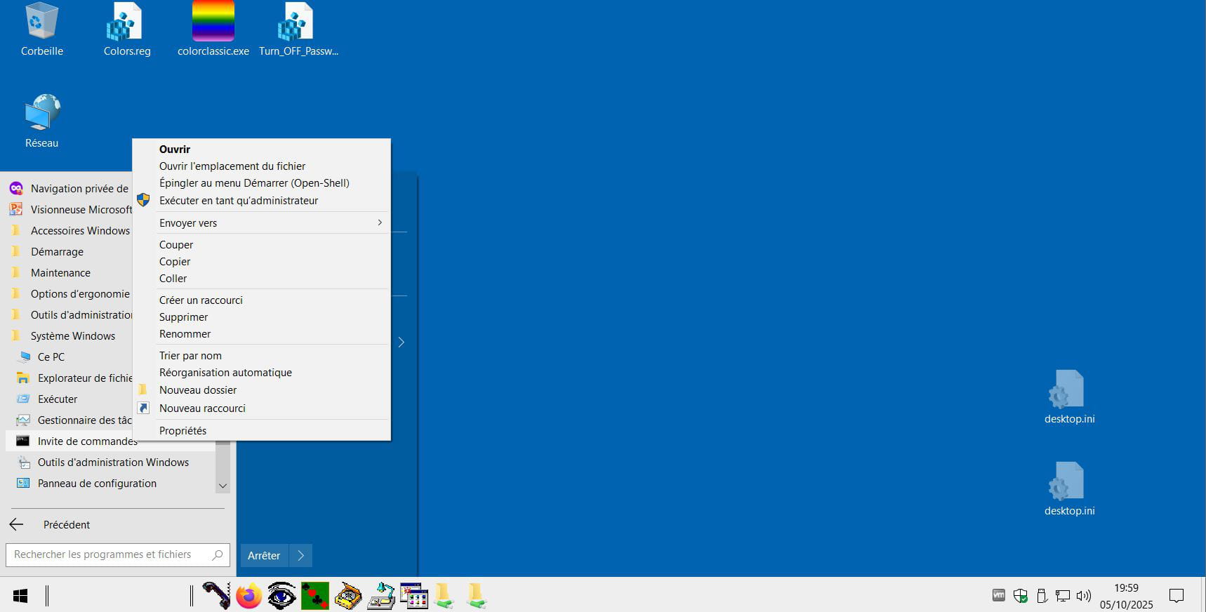 Sous Windows 10 Pro ou pas, comme je l'ai illustré (j'ai un menu démarrer spécifique Open Shell mais cela ne change pas la question), les deux se trouvent dans le menu démarrer, PowerShell est pour cela assommer une mouche avec un marteau, on peut faire un clic droit sur l'invite de commandes, exécuter en tant qu'administrateur.