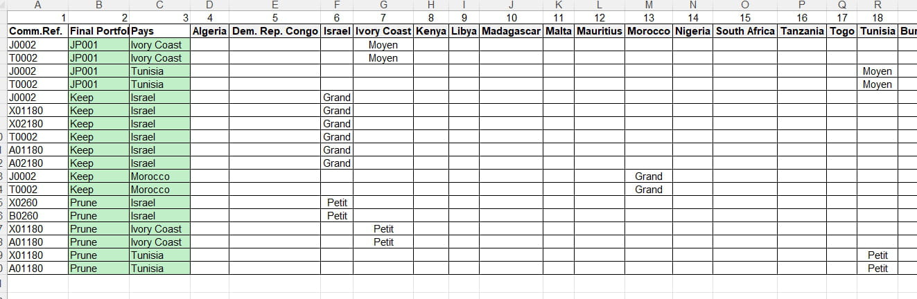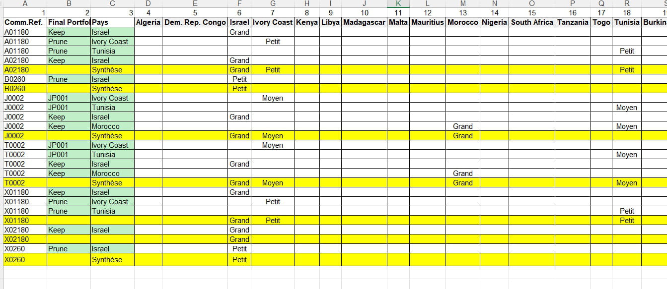 Vous avez un fichier avant traitement qui ressemble à la première capture ou les données ne sont pas trier selon les référence.