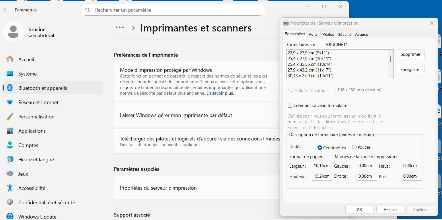 Pour autant, de nombreux formats y compris définis non seulement par leur taille mais par un nom n'apparaissent pas dans les choix d'impression à partir d'un logiciel, ce qui sous-tendrait qu'il faut aussi que le format en question soit implémenté dans le fichier GPD du pilote de l'imprimante concernée.