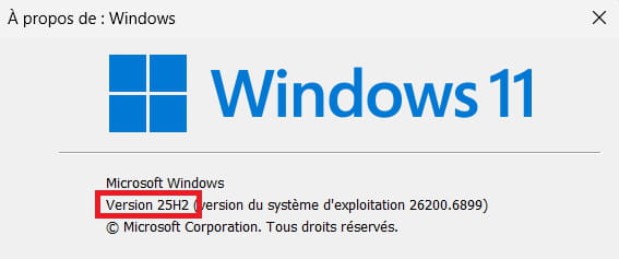 N.B. Assure-toi de bien sélectionner la dernière version --> Windows 11 25H2